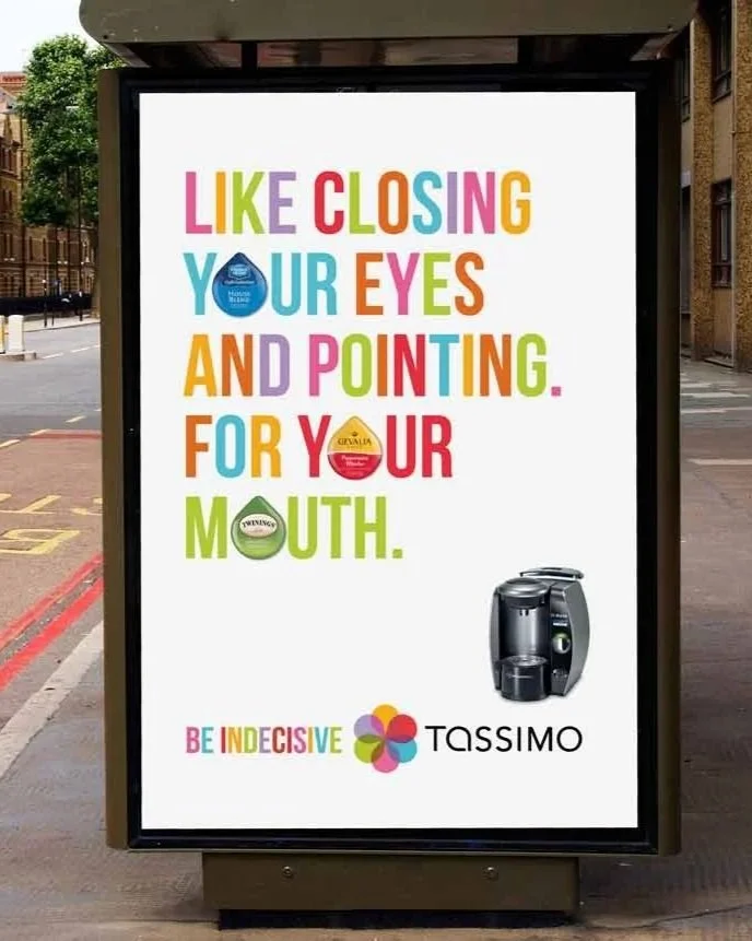 Tassimo’s coffee makers work with lots of different coffee pod brands. So in a saturated market, how do you launch them? You lean into the one thing that makes them unique: Choice. Which leads to the joy of indecisiveness. Which leads to a bold visual identity and brand that encourages people to “choose not to choose.”